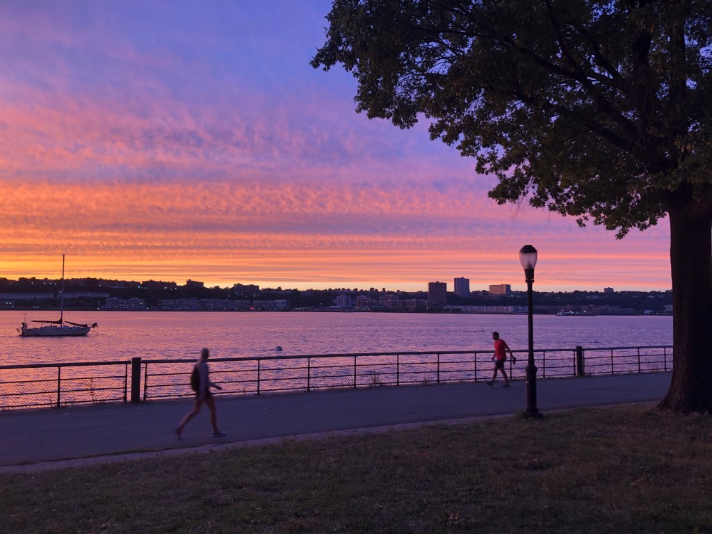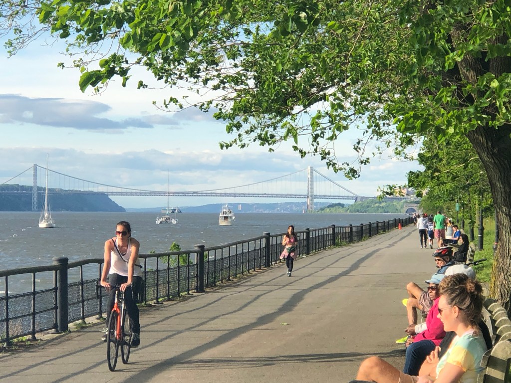 It was late-summer of 2018 when I first discovered the path to Riverside Park from the Riverside Drive. Having descended from Broadway, I was immersed by the canopy of trees along the sidewalk, which protected me from the still-burning sun of 5:30pm. As I reached 96th street, intimidated by the roads uphill (which my Citibike was clearly not designed to overcome), I would turn right into the road shared by cyclers and pedestrians, overseeing the river. The view of the river was projected behind the veil of trees and sometimes I would park my bike and stare at the shades of the cloud from the chinks of the leaves. Soon I discovered a secret path leading directly to the bike lane right beside the river. A whole new part of the world was disclosed to me–the glimmering river, the unobstructed wind bringing with it a slight odor of the sea, and the pedestrians and runners that I had to pay close attention to lest I should run into them. Occasionally there would be old people sitting on the bench with their guitars, or couples picnicking on the meadow behind the benches. Upon its discovery, this route immediately became my favorite and I would bike through it whenever possible, sometimes all the way from 125th street, and sometimes all the way to 16th street, where I could indulge in the variety of dinner choices of Chelsea and West Village.